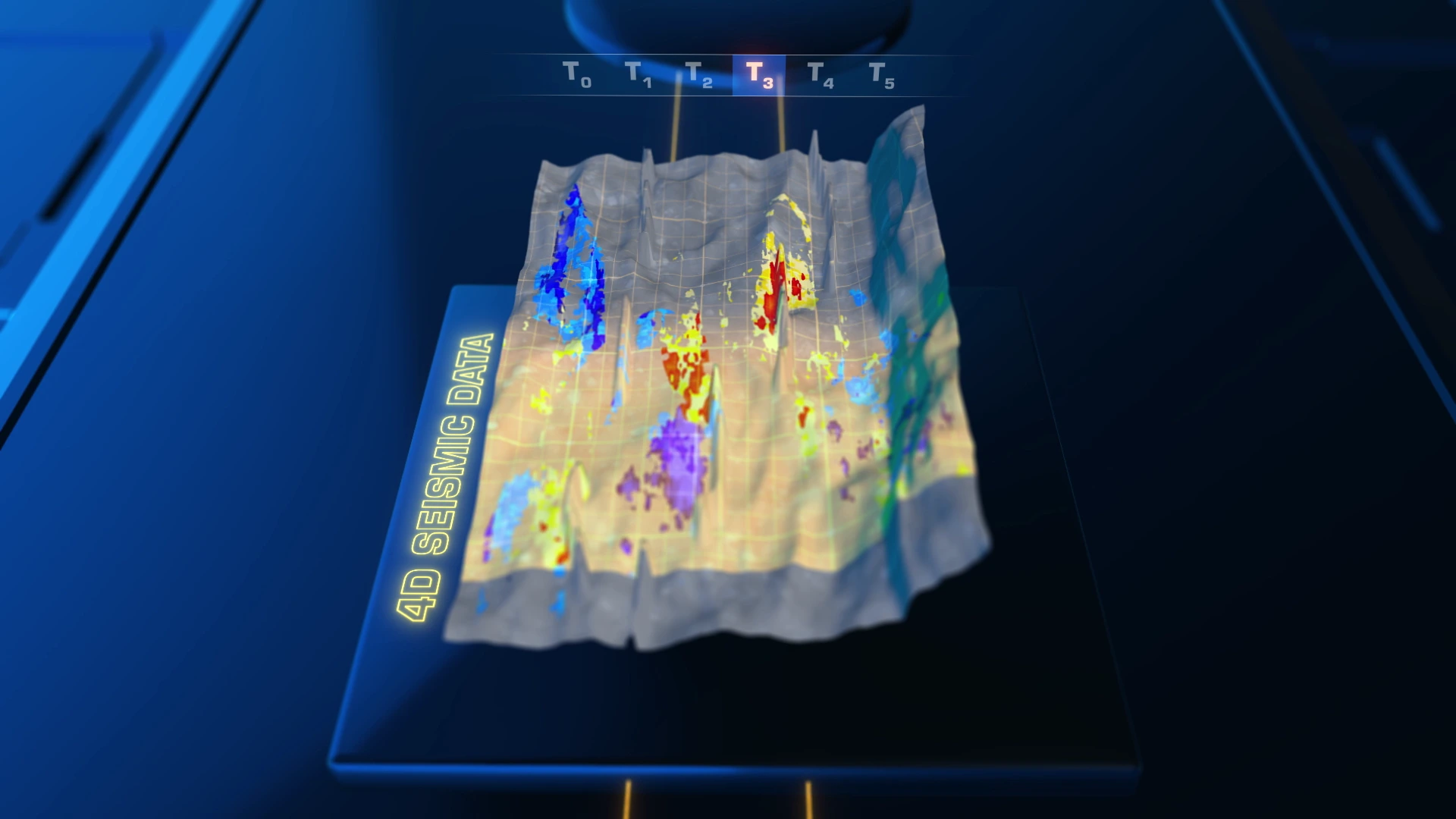 Visualisation 3D expliquant l'analyse temporelle des données géologiques pour évaluer les capacités de production des réservoirs. le fonctionnement des simulateurs de réservoirs pétroliers.