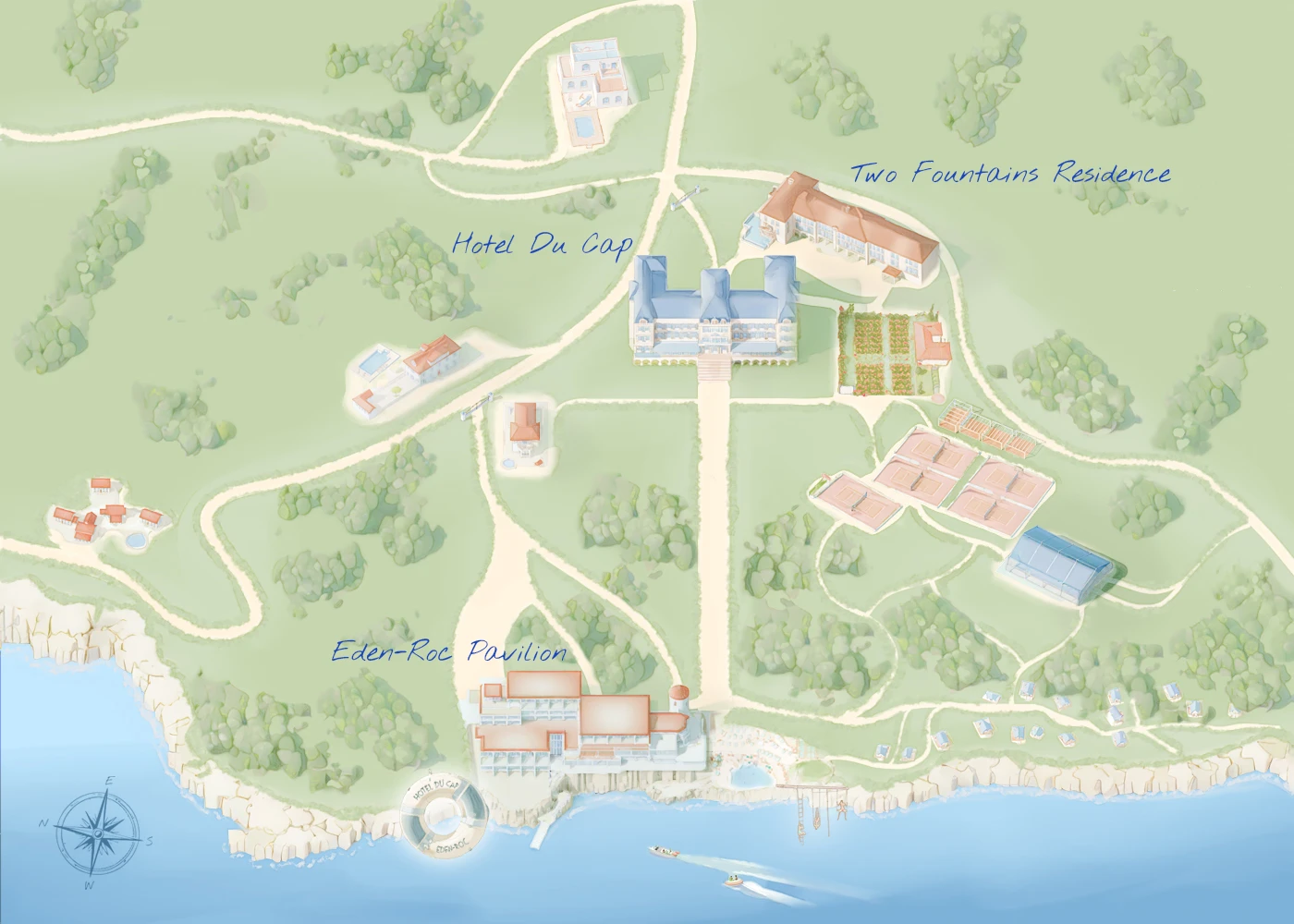 Création de cartes illustrées en 2D/3D pour les hôtels et resorts de luxe du groupe Oetker Collection.